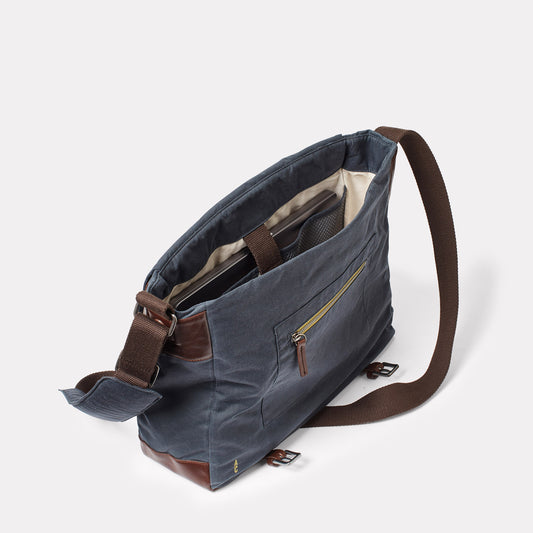 Jeremy Large Waxed Cotton Crossbody Satchel in Steel