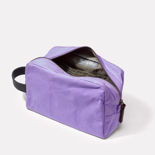 Simon Waxed Cotton Washbag in Lilac