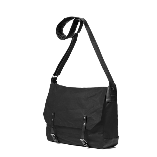 Jeremy Large Waxed Cotton Crossbody Satchel in Black