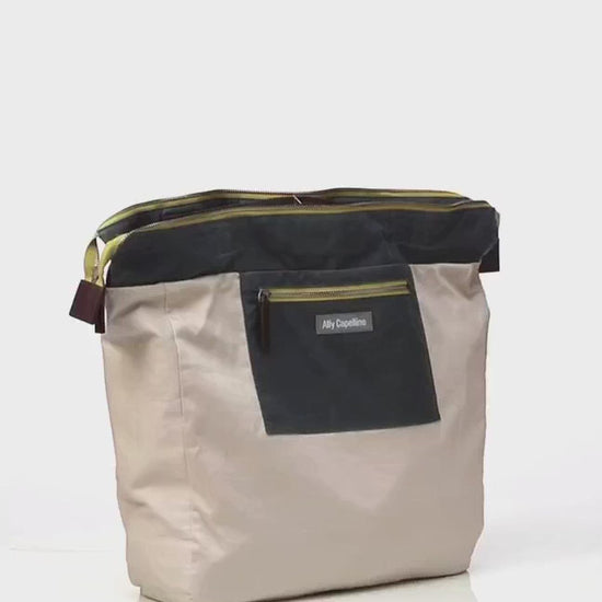 Frank is the original iconic backpack from Ally Capellino. With its signature top handles, double pockets, boxy shape and wide top opening, it is recognisable in creative hubs worldwide.